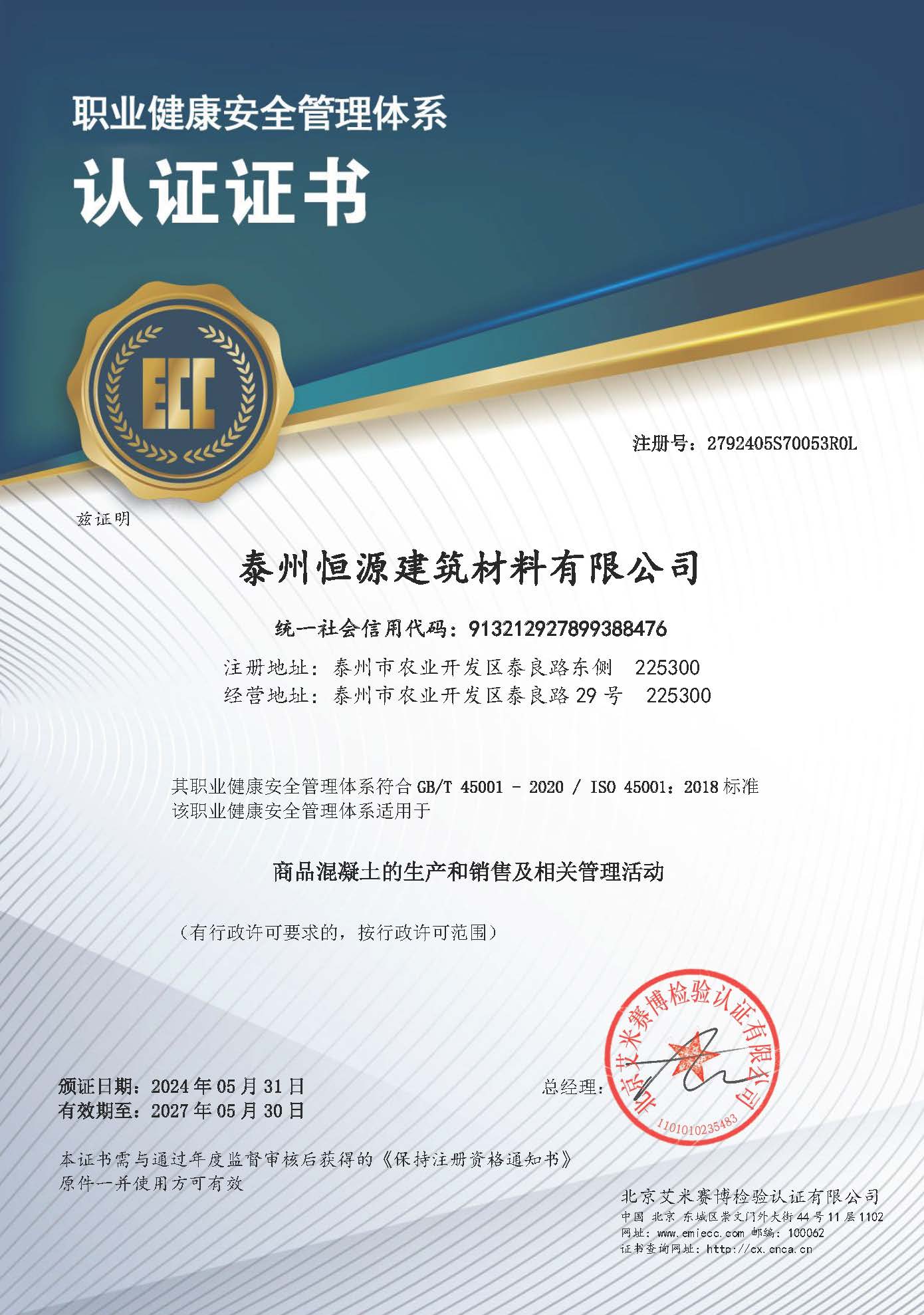 近期,泰州恒源建筑材料有限公司順利通過(guò)了GB/T14001 GB/T45001管理體系認(rèn)證并已獲得了相關(guān)證書(shū)。這標(biāo)志著我司已步入規(guī)范化、標(biāo)準(zhǔn)化、科學(xué)化的現(xiàn)代企業(yè)管理軌道,企業(yè)各項(xiàng)管理工作以及企業(yè)文化邁上了一個(gè)新的臺(tái)階。